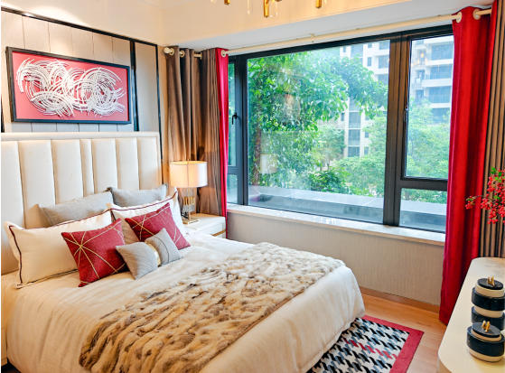 住宅式公寓,户型及朝向宜居:全部房源九成采用2梯5户低密度设计,八成户型为3室2厅2卫2阳台,格局阔绰;约八成房源为南面朝向,通风采光俱佳,有效应对岭南潮湿气候,不惧回南天。